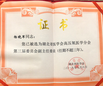 武汉明州康复医院高压氧科主任、副主任医师杨晓军当选为副主任委员。这标志着中国500强企业奥克斯集团旗下的武汉明州康复医院高压氧医疗技术处在全省先进行列,并受到湖北省高压氧同行的高度认可。